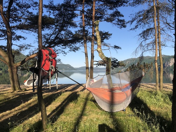 Camp Lyngdal has a 500m long pine forest right behind the beach, with innumerable spaces for tents and hammocks!